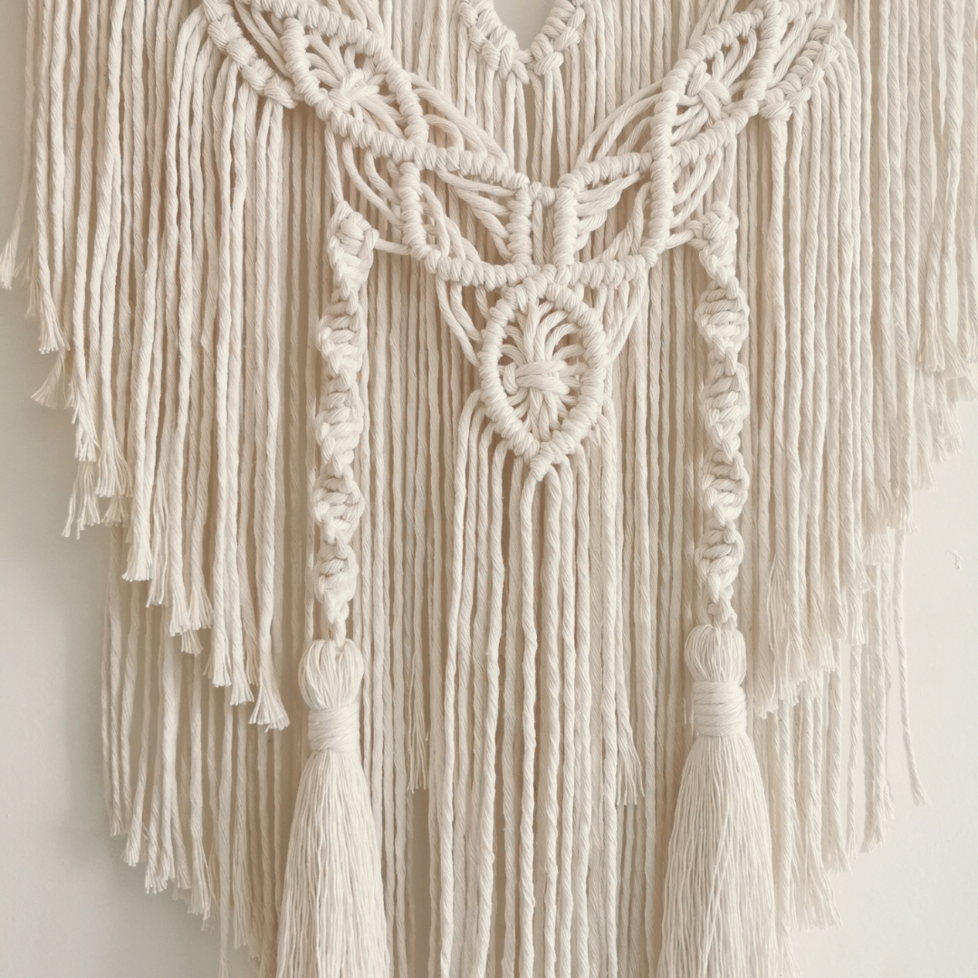 ✨ Donnez du style et de la personnalité à vos murs avec le macramé mural Léotie : une pièce artisanale qui allie nature, élégance et authenticité.