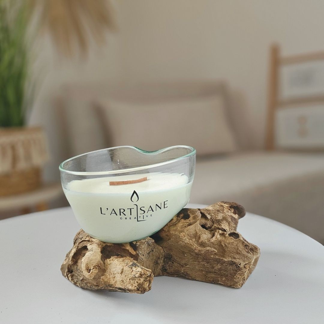 Les amateurs de matières naturelles peuvent également découvrir les autres modèles de la collection de bougies artisanales sur racine de bois disponibles dans la boutique, ainsi que l’ensemble des bougies parfumées artisanales proposées dans l’atelier.