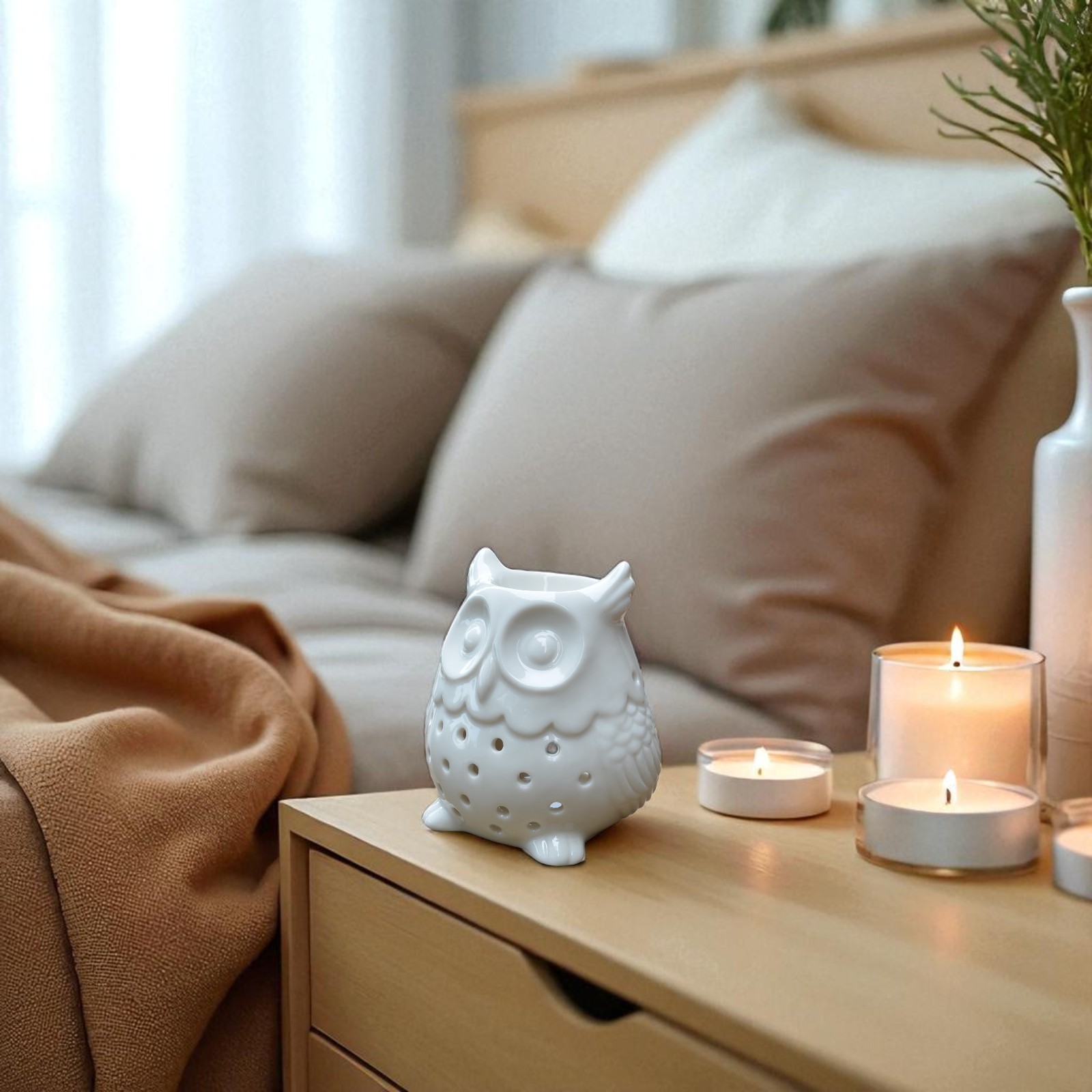 Craquez pour ce brûleur en céramique blanche en forme de hibou, un diffuseur aussi charmant qu’utile. Son design discret laisse passer la lumière par de petits ajours, à la manière d’un photophore, créant une ambiance chaleureuse et cocooning.
