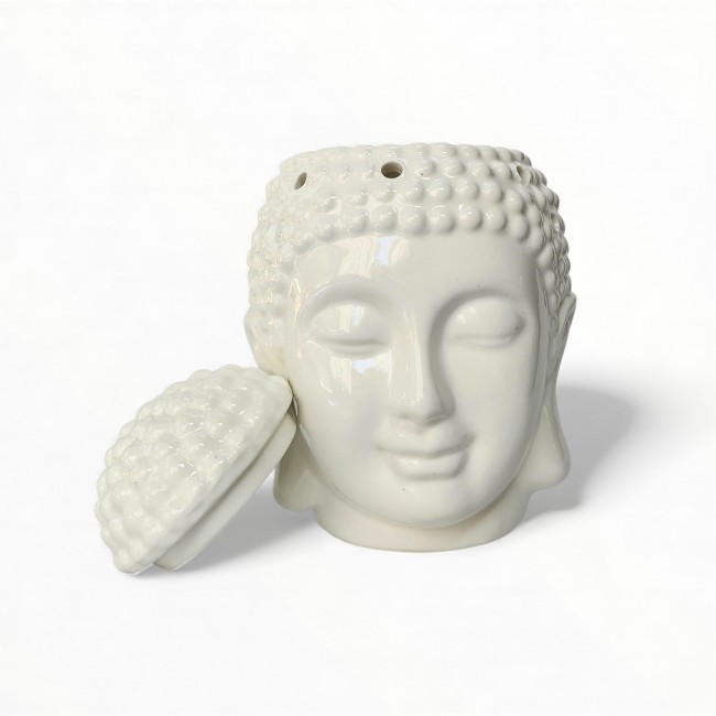 Apportez une ambiance zen et apaisante à votre intérieur avec ce brûleur tête de Bouddha en céramique blanche. Sa finition brillante et ses détails finement travaillés en font un véritable objet de décoration, idéal pour une atmosphère minimaliste, bohème ou esprit spa.