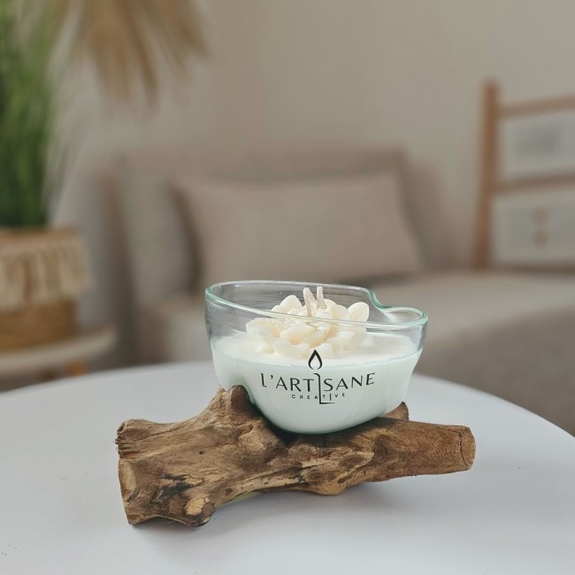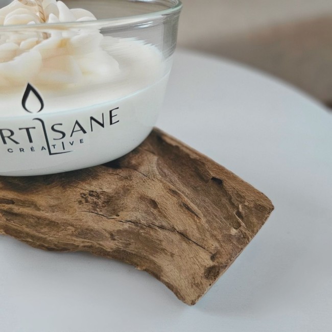 Les amateurs de matières naturelles peuvent également découvrir les autres modèles de la collection de bougies artisanales sur racine de bois disponibles dans la boutique, ainsi que l’ensemble des bougies parfumées artisanales proposées dans l’atelier.