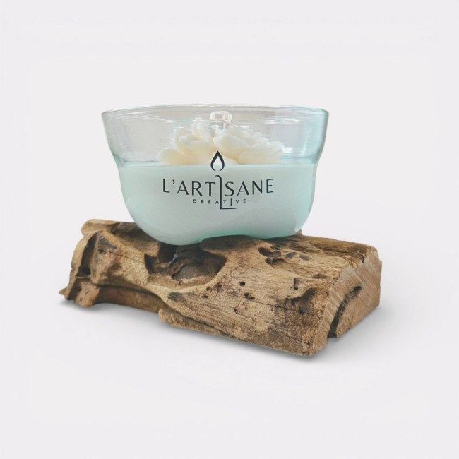 Cette bougie artisanale parfumée Feu de Bois est présentée dans un verre soufflé délicatement posé sur une véritable racine de bois naturel. Chaque création est unique : la forme du bois, façonnée par la nature, donne à chaque bougie son caractère et son équilibre.