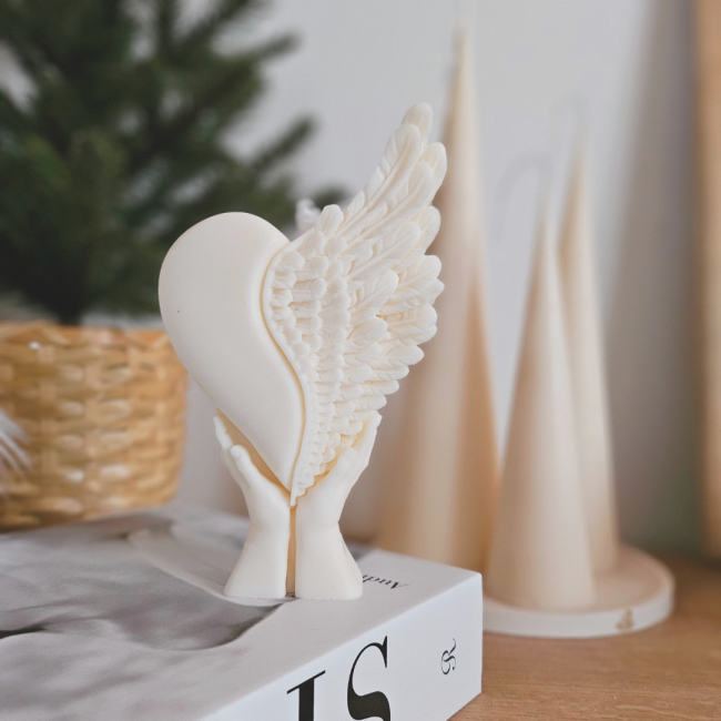 Bougie décorative Cœur Ailé – 15 cm | Bougie artisanale en cire végétale, sans parfum